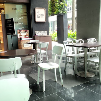 I used to frequent the 6 Oz Espresso Bar at Fuji Xerox Tower quite often; they have better decor there - faux grass and all. Anyway, today we decided to lunch at the flagship outlet because it was a rainy day and this place was fortunately, not crowded at that point in time. The decor here is minimalist and simple, no fuss or muss. Service is efficient and businesslike; customers order and pay at counter while the crew would bring the food / drinks to our tables.